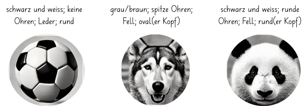 „Pandas sind flauschig, haben runde Ohren und einen runden Kopf.“