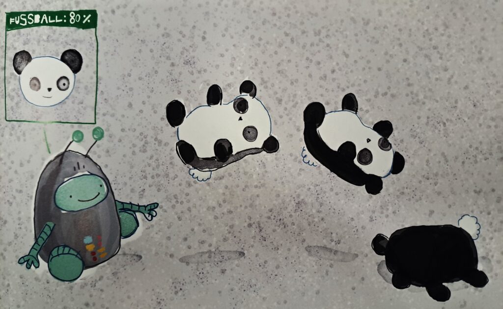 Anhand der Bilder kann gezeigt werden, dass der Roboter die unrealen Lebensmittel für richtig hält, weil sie sehr ähnlich zu den Bildern sind, die er von Hotdogs, Glace oder Pizza bereits gesehen hat. Er weiss ja nicht, dass Bonbons auf Pizza nicht fein sein, weil er selbst nicht schmecken kann (Unterschied Mensch – Maschine).